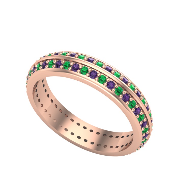 Yeşil kuvars ve ametist 925 ayar rose altın kaplama gümüş yüzük