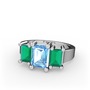 Akuamarin ve kök zümrüt 8 ayar beyaz altın yüzük