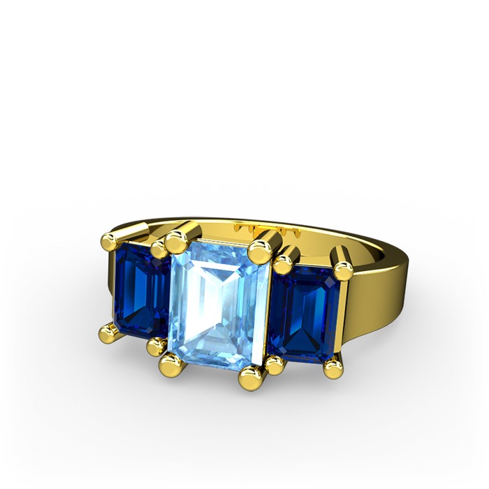 Akuamarin ve lab safir 18 ayar altın yüzük