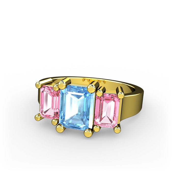 Akuamarin ve pembe kuvars 8 ayar altın yüzük