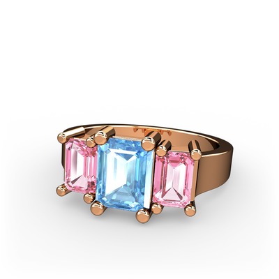 Akuamarin ve pembe kuvars 8 ayar rose altın yüzük