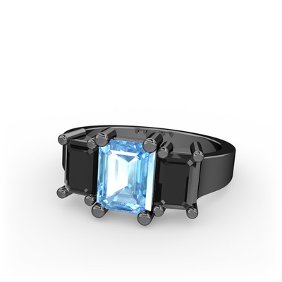 Akuamarin ve siyah zirkon 925 ayar siyah rodyum kaplama gümüş yüzük