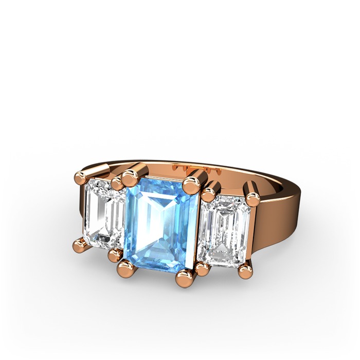 Akuamarin ve swarovski 925 ayar rose altın kaplama gümüş yüzük