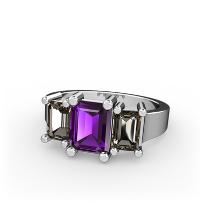 Ametist ve dumanlı kuvars 14 ayar beyaz altın yüzük