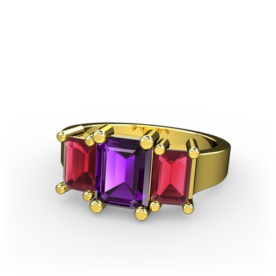 Ametist ve kök yakut 925 ayar altın kaplama gümüş yüzük
