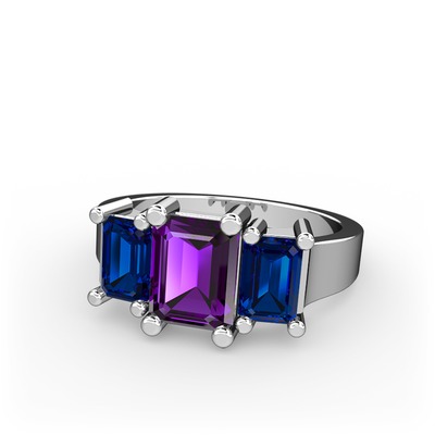 Ametist ve lab safir 14 ayar beyaz altın yüzük