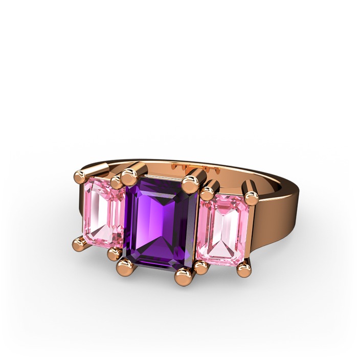 Ametist ve pembe kuvars 8 ayar rose altın yüzük