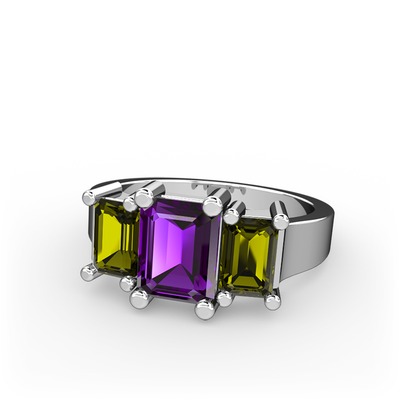 Ametist ve peridot 14 ayar beyaz altın yüzük