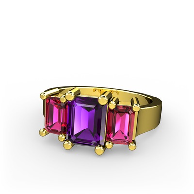Ametist ve rodolit garnet 925 ayar altın kaplama gümüş yüzük