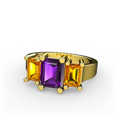 Ametist ve sitrin 18 ayar altın yüzük