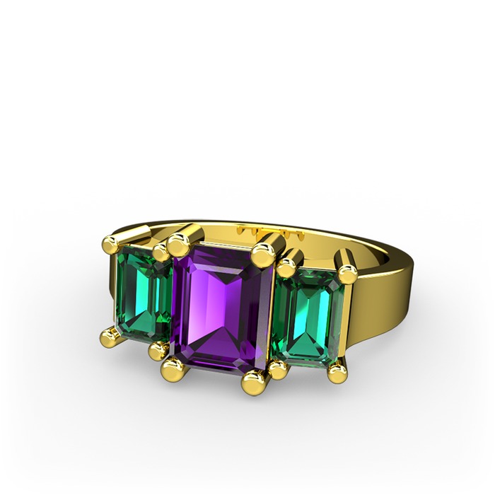 Ametist ve yeşil kuvars 8 ayar altın yüzük