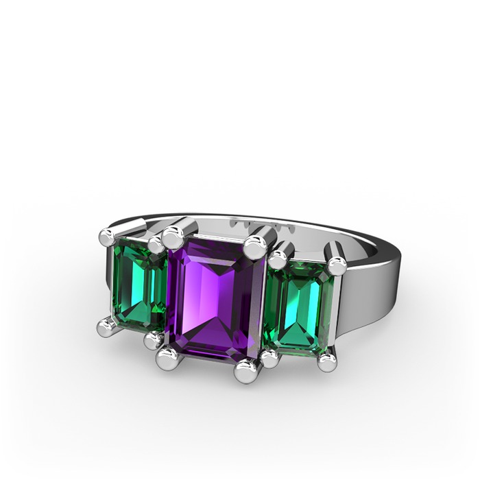 Ametist ve yeşil kuvars 8 ayar beyaz altın yüzük