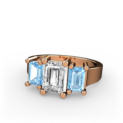 Beyaz zirkon ve akuamarin 18 ayar rose altın yüzük