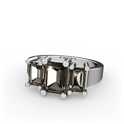 Dumanlı kuvars 18 ayar beyaz altın yüzük