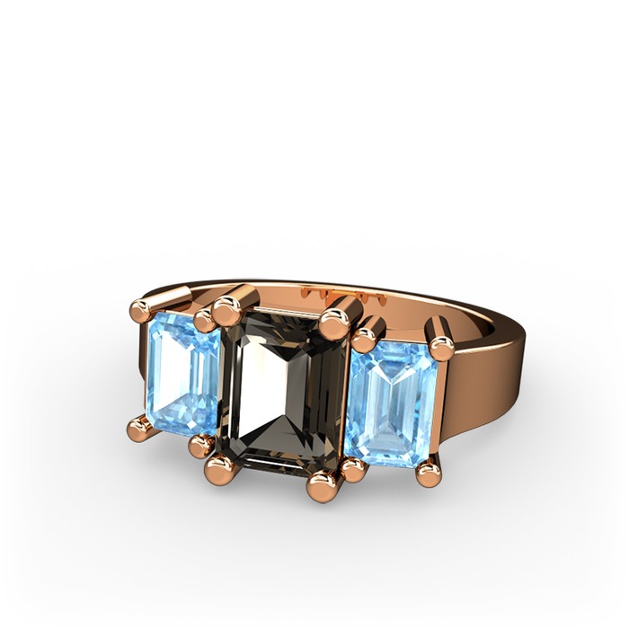 Dumanlı kuvars ve akuamarin 8 ayar rose altın yüzük