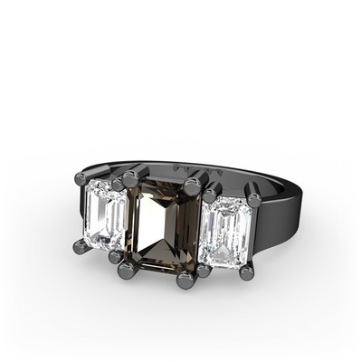 Dumanlı kuvars ve beyaz zirkon 925 ayar siyah rodyum kaplama gümüş yüzük