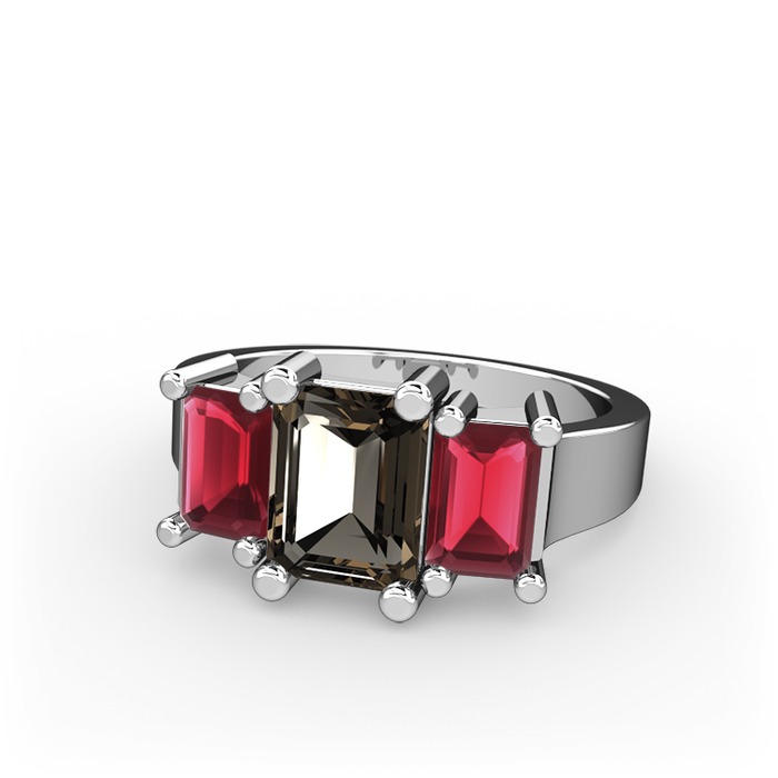 Dumanlı kuvars ve kök yakut 925 ayar gümüş yüzük
