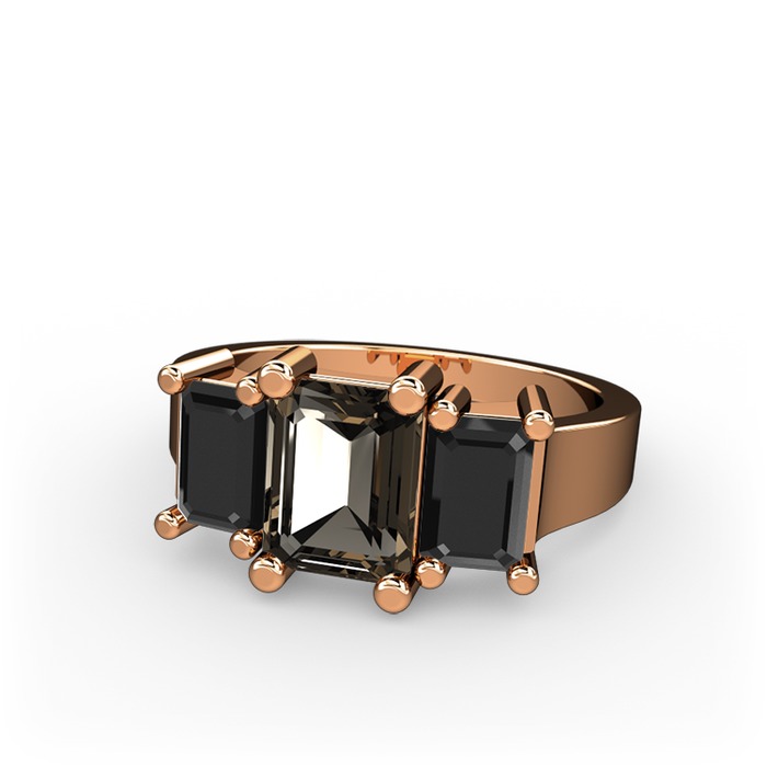Dumanlı kuvars ve siyah zirkon 18 ayar rose altın yüzük