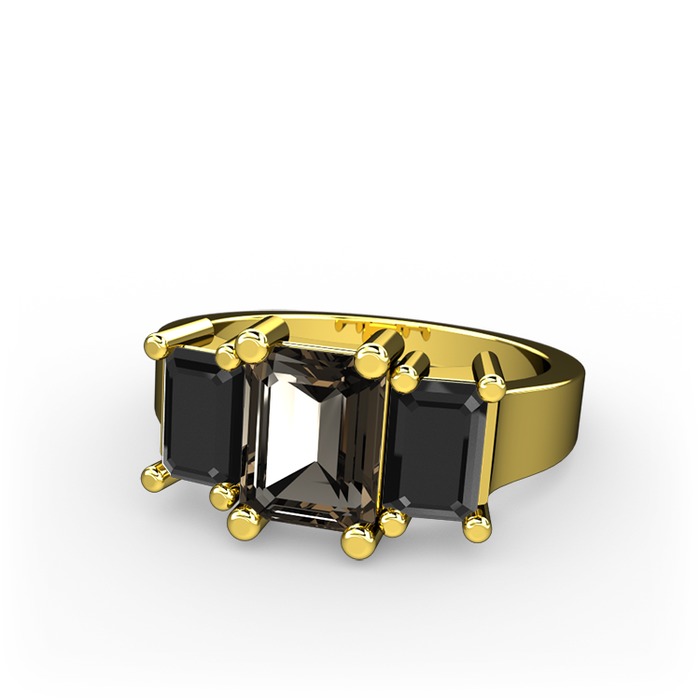 Dumanlı kuvars ve siyah zirkon 925 ayar altın kaplama gümüş yüzük
