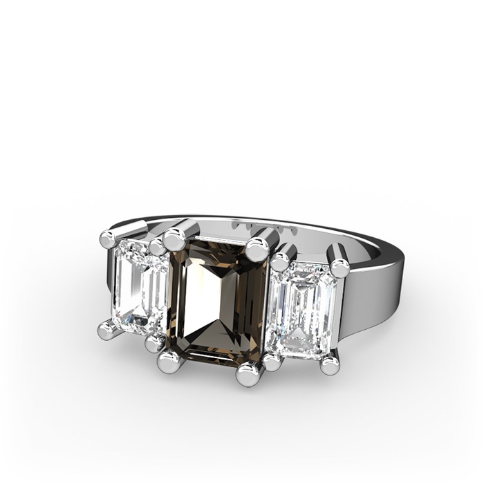 Dumanlı kuvars ve swarovski 14 ayar beyaz altın yüzük