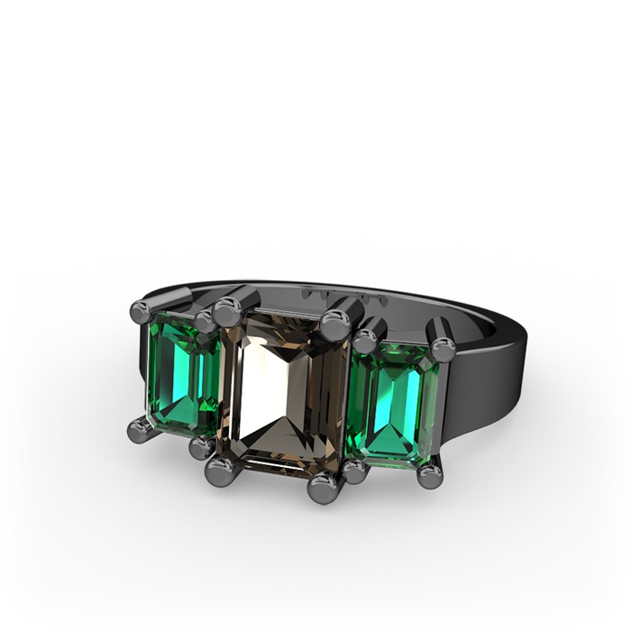 Dumanlı kuvars ve yeşil kuvars 925 ayar siyah rodyum kaplama gümüş yüzük