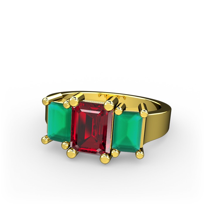 Garnet ve kök zümrüt 14 ayar altın yüzük