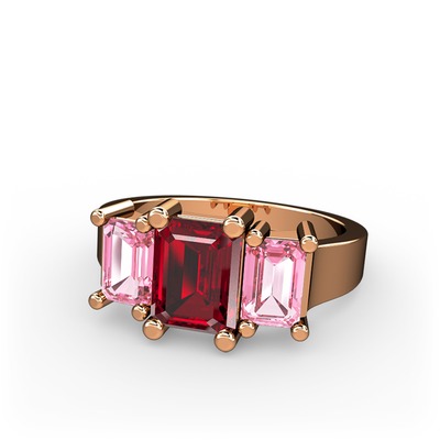 Garnet ve pembe kuvars 925 ayar rose altın kaplama gümüş yüzük