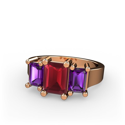 Kök yakut ve ametist 8 ayar rose altın yüzük