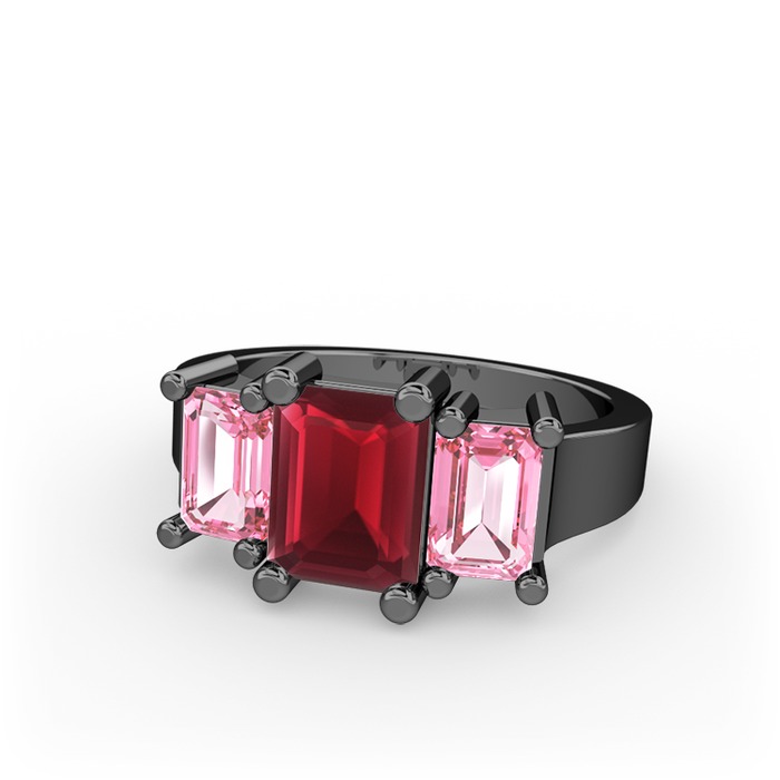 Kök yakut ve pembe kuvars 925 ayar siyah rodyum kaplama gümüş yüzük
