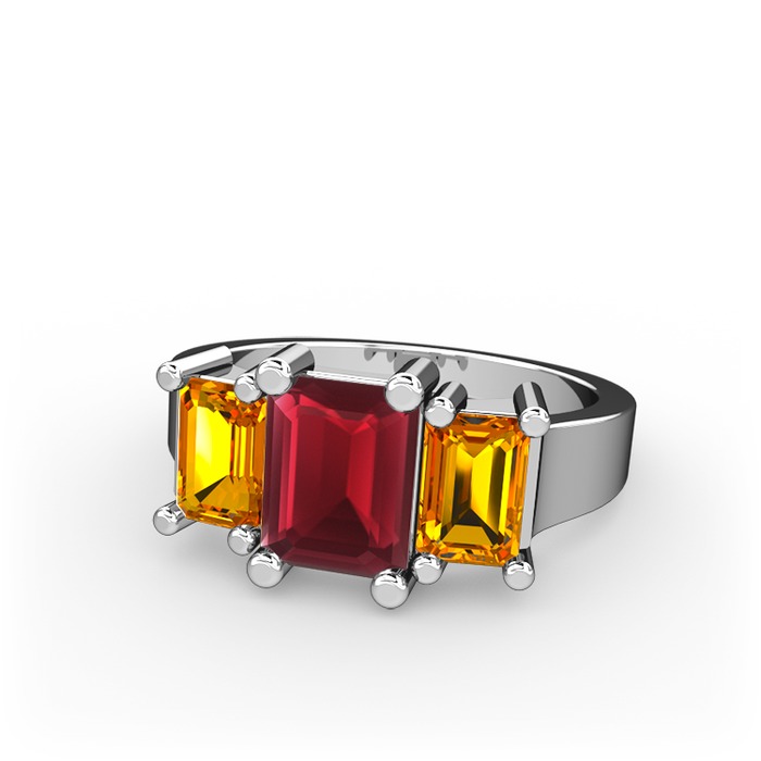Kök yakut ve sitrin 8 ayar beyaz altın yüzük