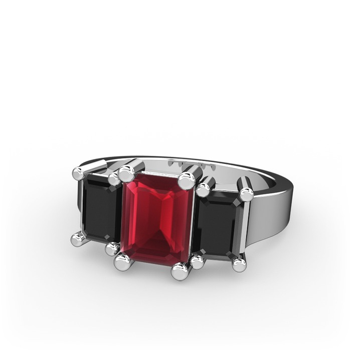 Kök yakut ve siyah zirkon 14 ayar beyaz altın yüzük