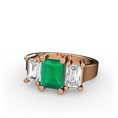 Kök zümrüt ve beyaz zirkon 14 ayar rose altın yüzük