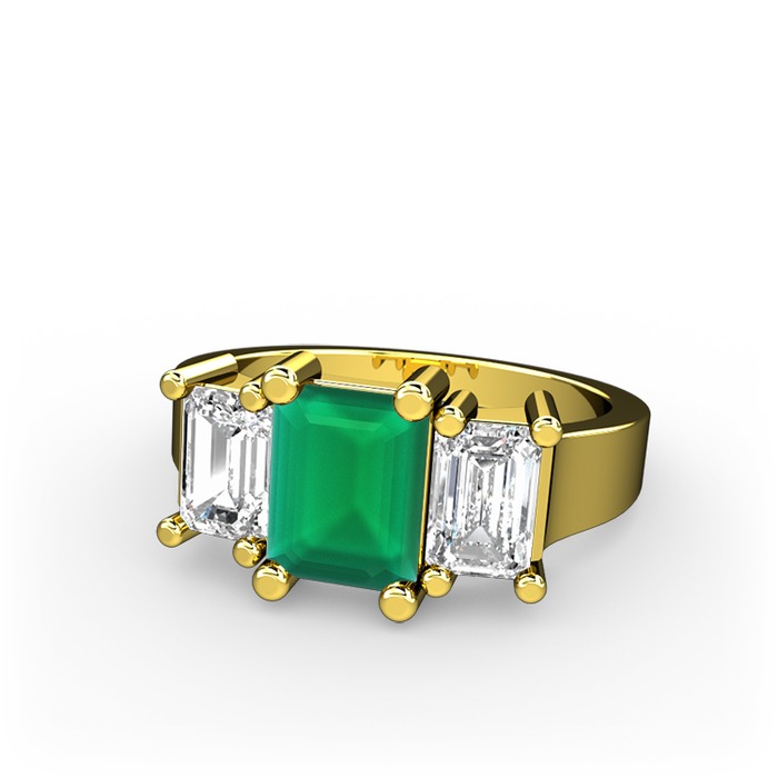 Kök zümrüt ve beyaz zirkon 18 ayar altın yüzük