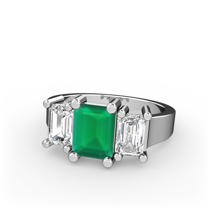 Kök zümrüt ve beyaz zirkon 18 ayar beyaz altın yüzük