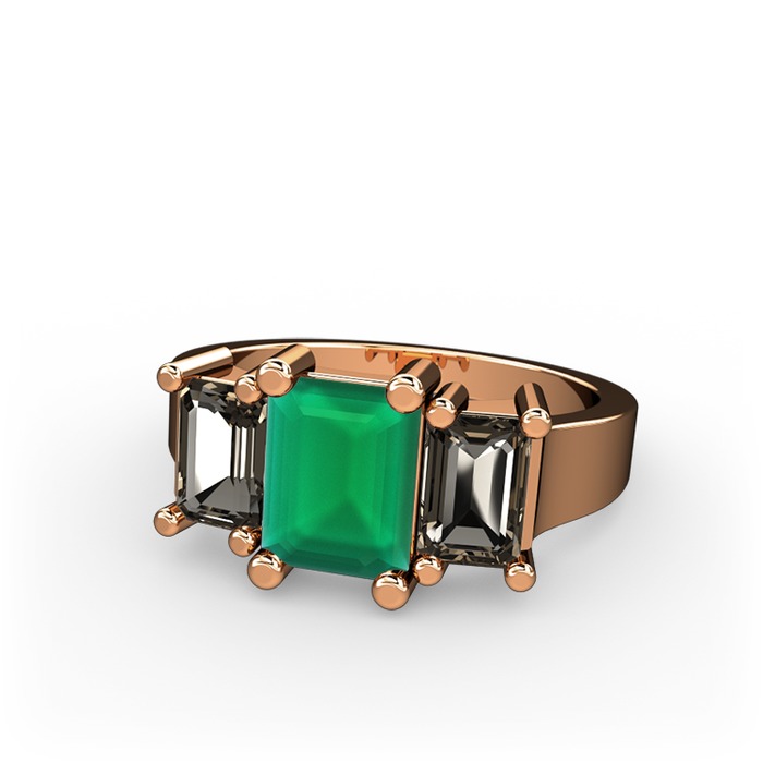 Kök zümrüt ve dumanlı kuvars 8 ayar rose altın yüzük