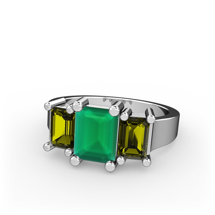 Kök zümrüt ve peridot 18 ayar beyaz altın yüzük