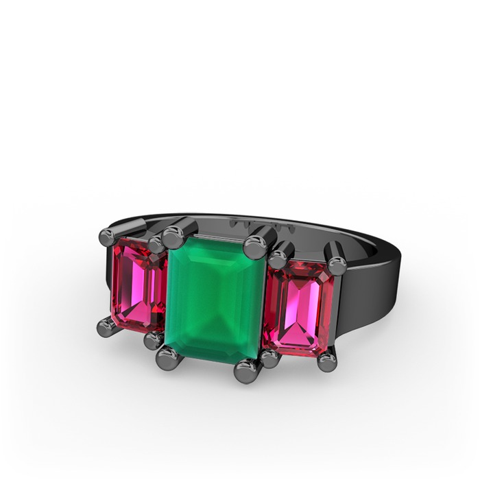 Kök zümrüt ve rodolit garnet 925 ayar siyah rodyum kaplama gümüş yüzük
