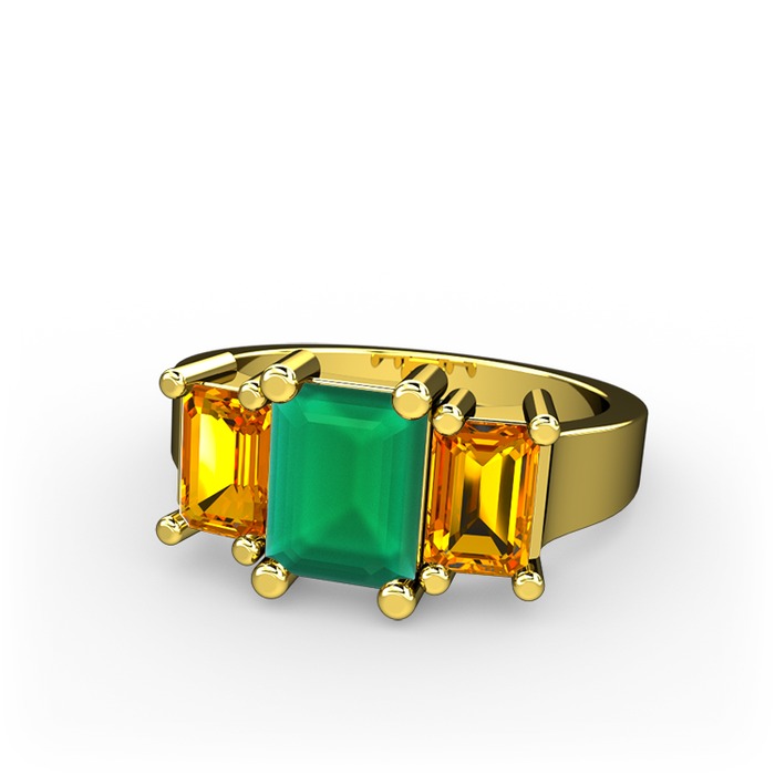 Kök zümrüt ve sitrin 925 ayar altın kaplama gümüş yüzük