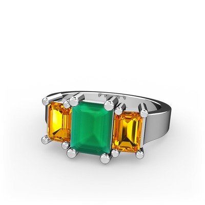 Kök zümrüt ve sitrin 925 ayar gümüş yüzük
