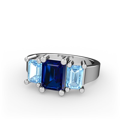 Lab safir ve akuamarin 925 ayar gümüş yüzük