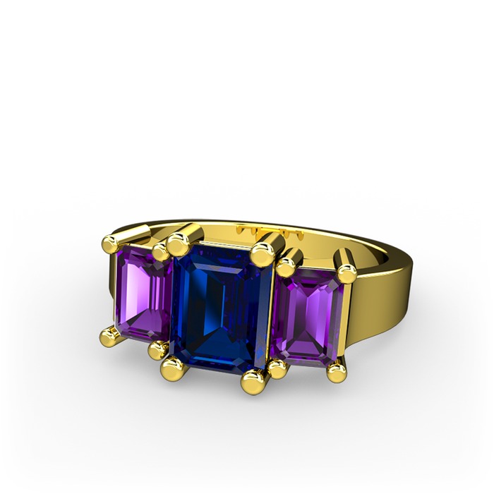 Lab safir ve ametist 925 ayar altın kaplama gümüş yüzük