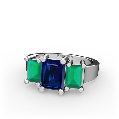 Lab safir ve kök zümrüt 18 ayar beyaz altın yüzük