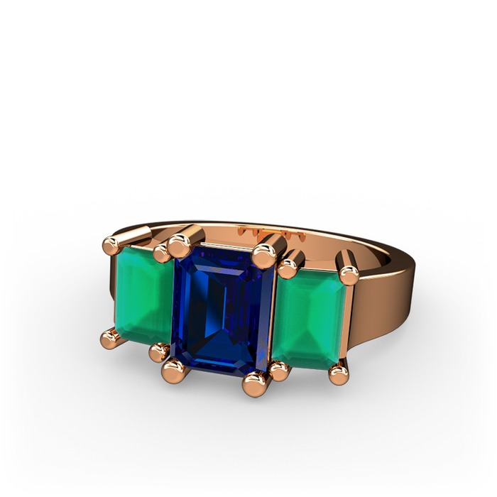 Lab safir ve kök zümrüt 925 ayar rose altın kaplama gümüş yüzük