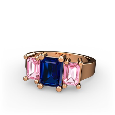 Lab safir ve pembe kuvars 8 ayar rose altın yüzük