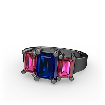 Lab safir ve rodolit garnet 925 ayar siyah rodyum kaplama gümüş yüzük