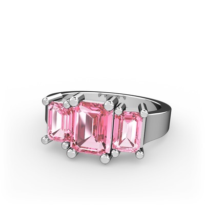 Pembe kuvars 8 ayar beyaz altın yüzük