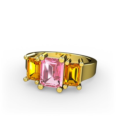 Pembe kuvars ve sitrin 14 ayar altın yüzük