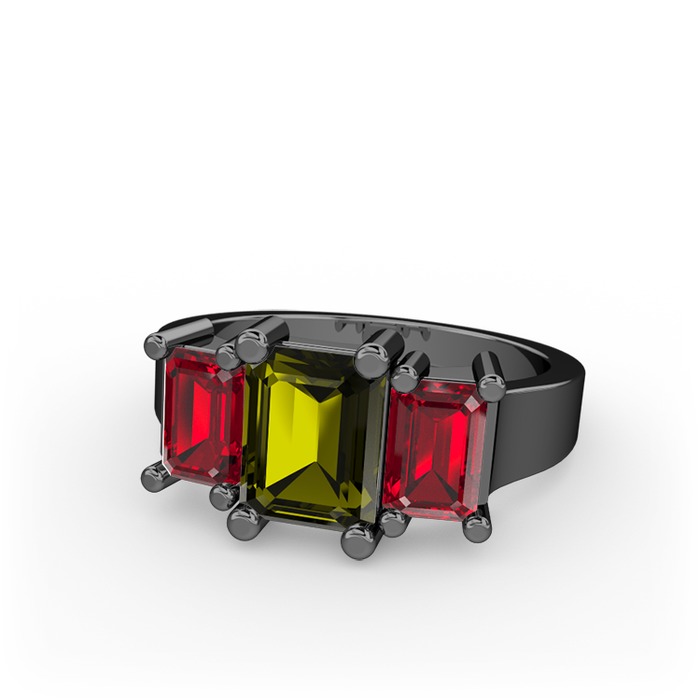 Peridot ve garnet 925 ayar siyah rodyum kaplama gümüş yüzük