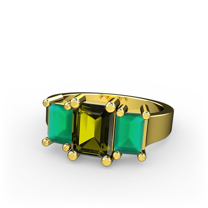 Peridot ve kök zümrüt 18 ayar altın yüzük