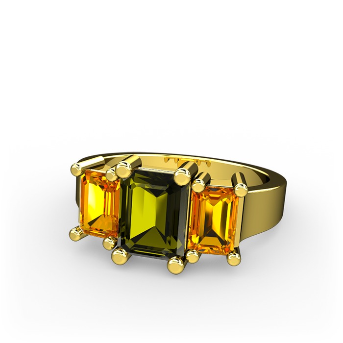 Peridot ve sitrin 925 ayar altın kaplama gümüş yüzük